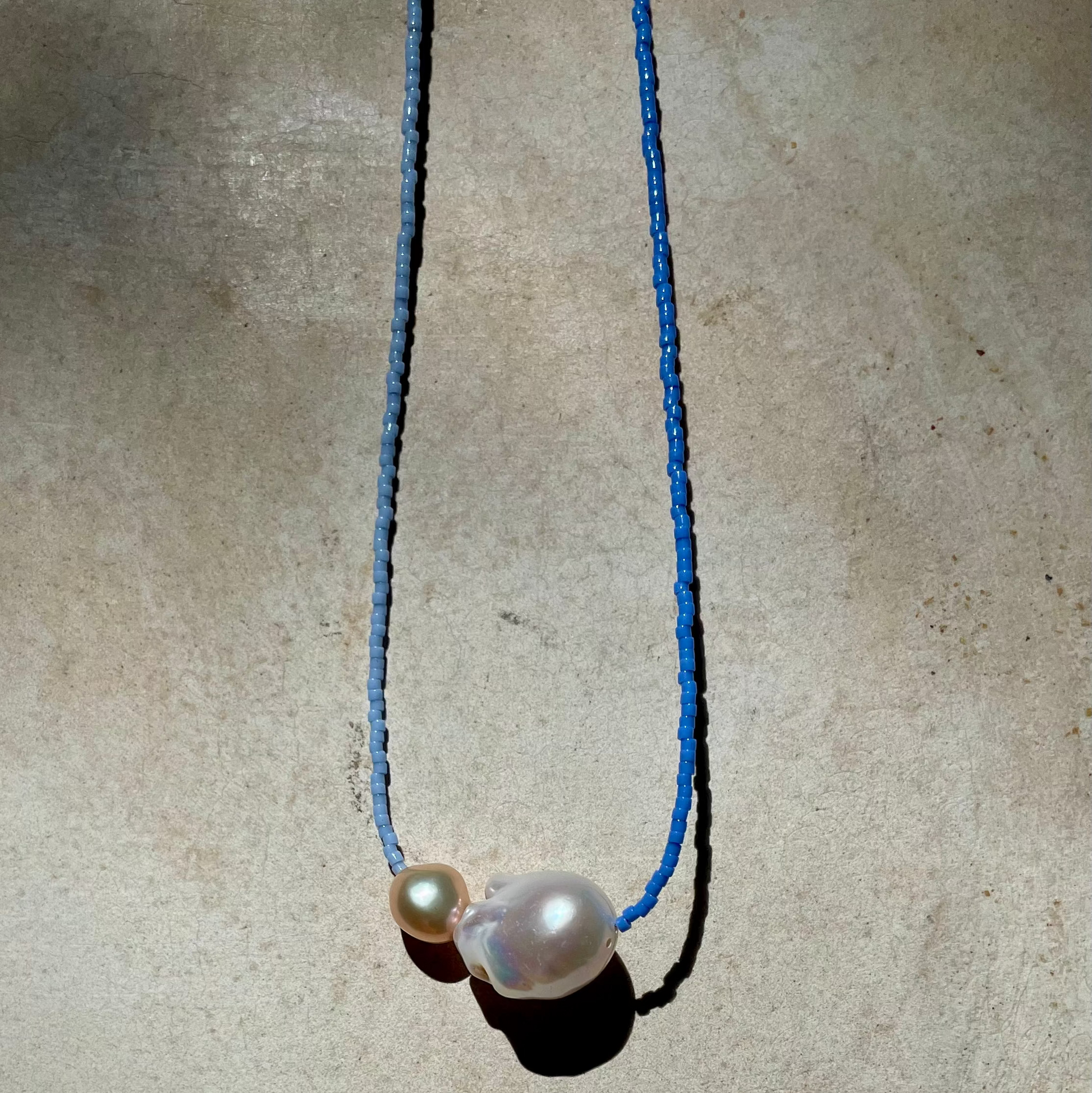 Freshwater pearls + Japanese glass beads + Sterling Silver Clasp.