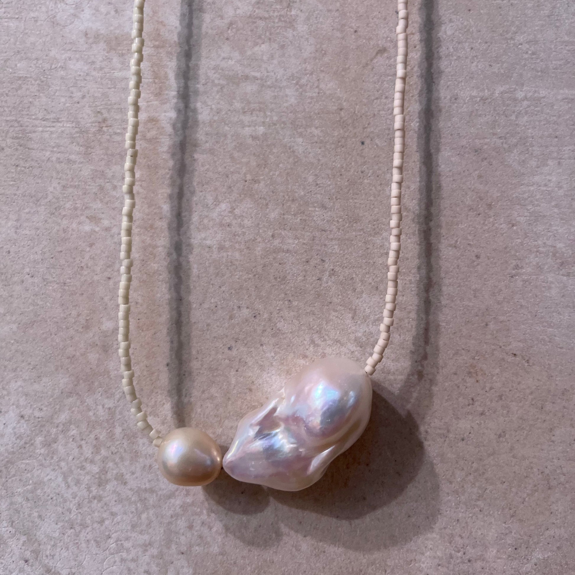 Freshwater pearls + Japanese glass beads + Sterling Silver Clasp.
