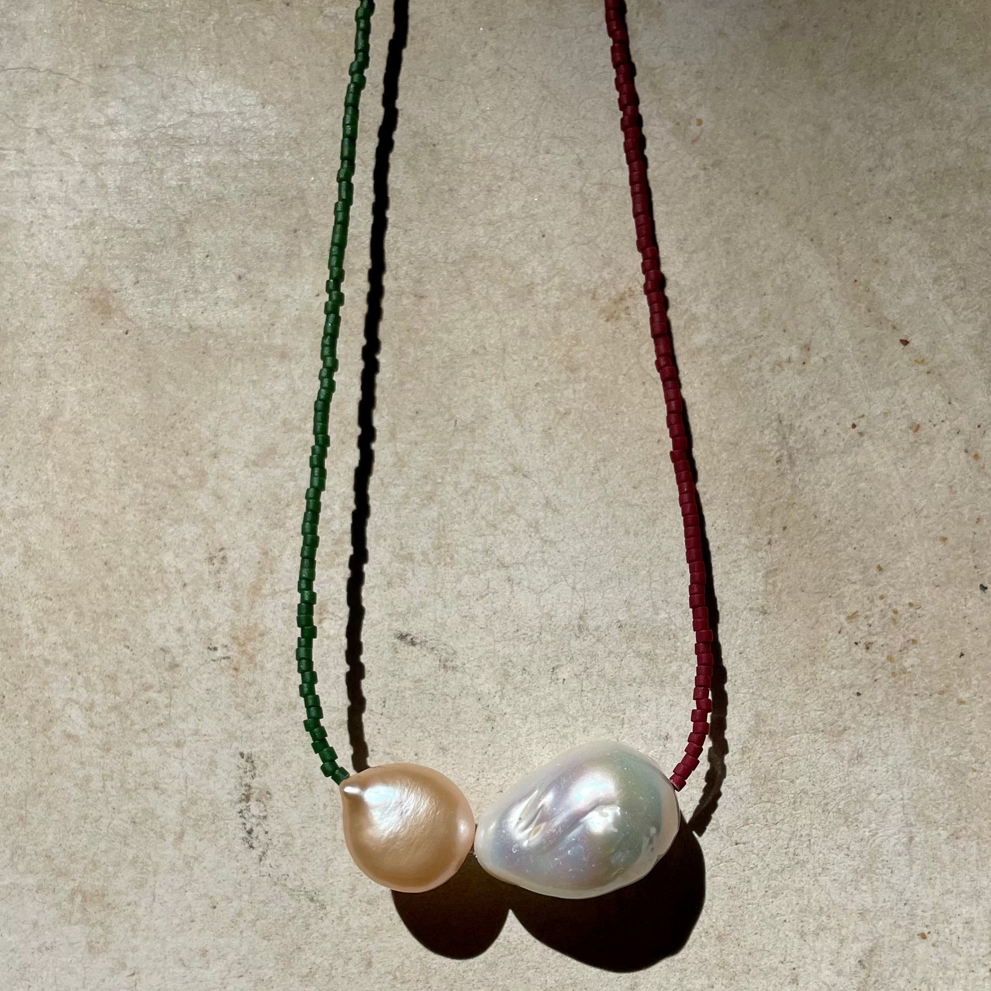 Freshwater pearls + Japanese glass beads + Sterling Silver Clasp.