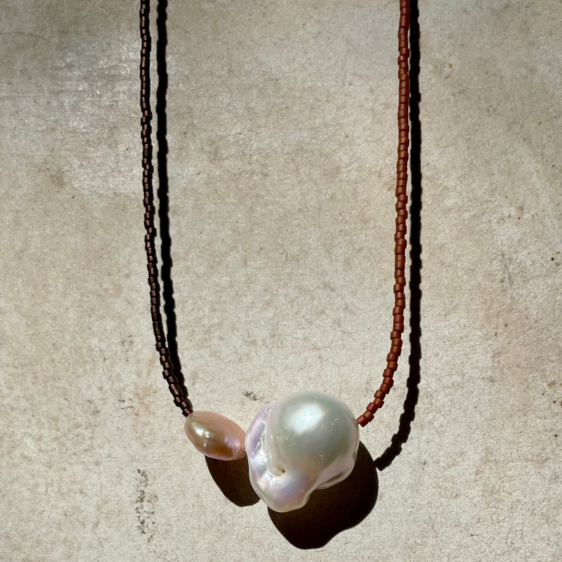 Freshwater pearls + Japanese glass beads + Sterling Silver Clasp.