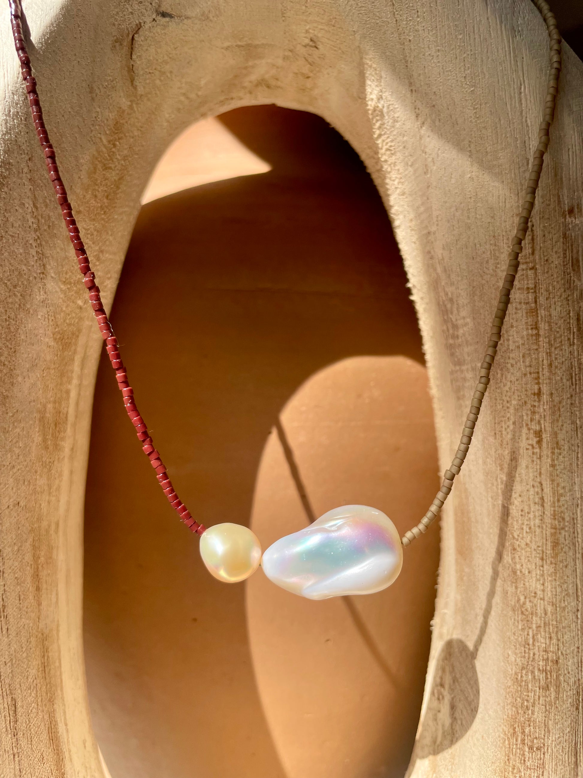 Freshwater pearls + Japanese glass beads + Sterling Silver Clasp.